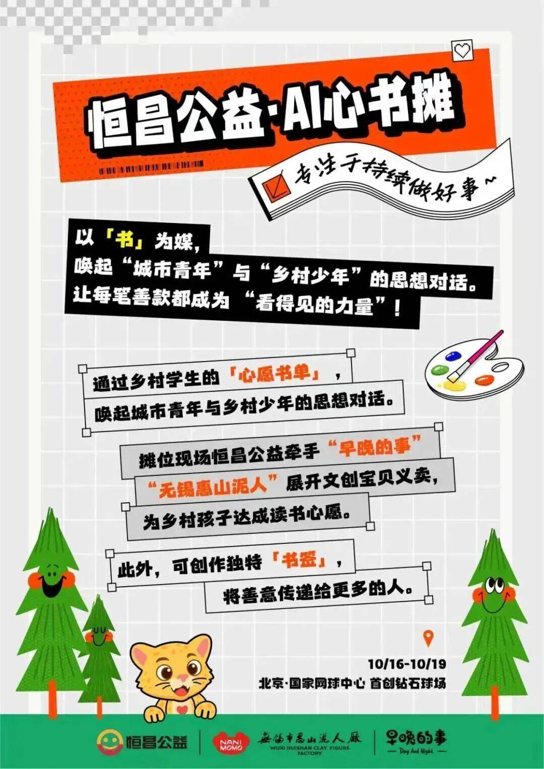 通过村落学生的「心愿书单」 ,城市青年取村落少年的思惟对话。摊位现场恒昌公益牵手“迟早的事”“无锡惠山泥人”展开文创宝物义卖,为村落孩子告竣读书心愿。此外,可创做奇特「」,将善意传送给更多的人。