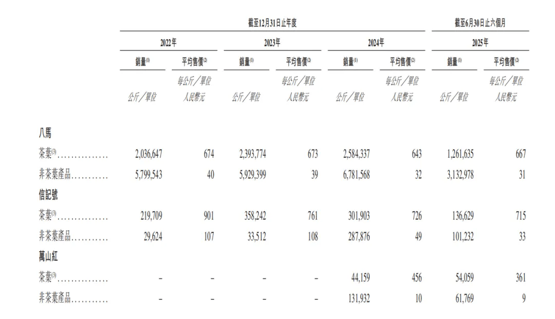 具体到产物,其高端品牌“信记号”普洱的平均售价持续走低,平均售价从2022年的901元/公斤降到本年上半年的715元/公斤。零售价跨越7万元/公斤的超高端茶叶,已不再被列为次要产物。